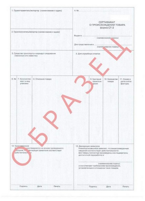 Форма сертификата меняется в зависимости от государства, в которое ввозится продукция. СТ обычно выдаются на продукцию российского производства, вывозимую за границу. Документ представляет собой бланк с несколькими уровнями защиты, всей необходимой информацией о товаре и подтверждениями от сотрудников Торгово-промышленной палаты РФ.