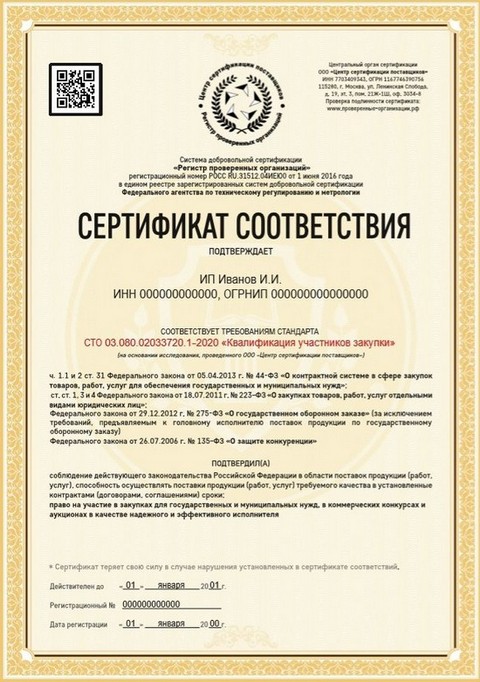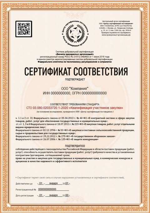 Сертификат СТО 03.080.02033720.1-2020 «Квалификация участников закупки» принят для минимизации возможных рисков, чтобы заключать контракты, принимать участие в тендере.